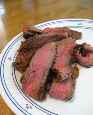 Slice steak across the grain. The spices are so good on this and the steak so tender.