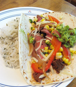 Fill a tortilla with a few slices of flank steak, add whatever toppings you like and you’ve got one tasty steak fajita.