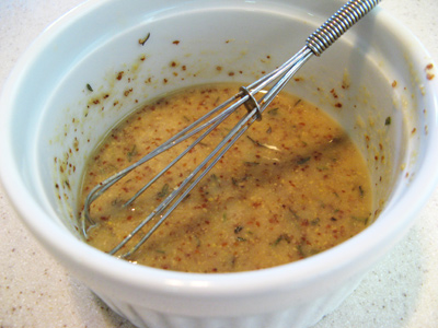 There’s a dressing that we’ll add to the cherry apple mix. It starts with a cider vinegar, Dijon mustard, brown sugar, thyme and some minced garlic.