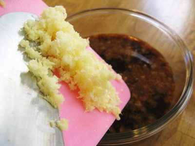 Grate a 2 inch piece of ginger on a coarse microplane grater.