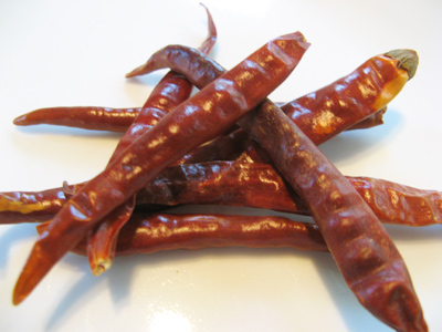 6 dried red chiles, Chile de Arbol’s are a good choice, stems and seeds removed