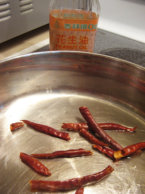 I like to toast the Chile de Arbol in some hot peanut oil. It only takes a few seconds. Just crank up the heat and get it to almost smoking and they will toast up to a rich dark color.