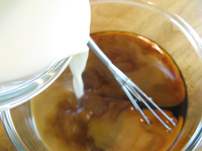 Combine 2 tablespoons Rice Vinegar, 2 tablespoons sugar, and 1/4 cup soy sauce.