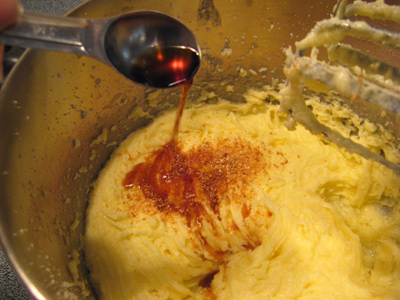 Once the eggs have all been blended into the butter sugar mixture, add the orange peel and vanilla.