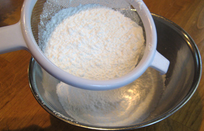 While the cake is in the oven, there’s plenty of time to make a glaze. Start with 2 cups of powdered sugar. I always sift it to get out any lumps.