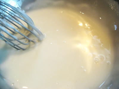 Pour 3 tablespoon milk into the powdered sugar and whisk.