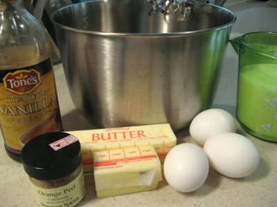 We’re also going to need some butter, sugar, eggs, vanilla and orange peel. The original recipe used fresh orange zest, however in a pinch I use Penzey’s Orange Peel which is a great substitute.