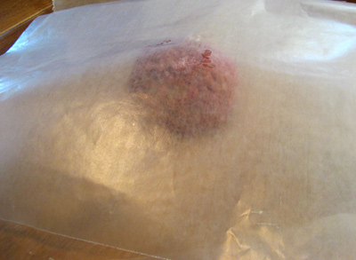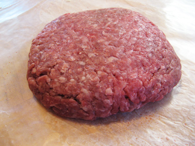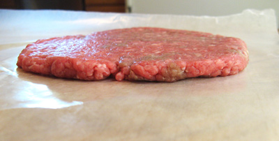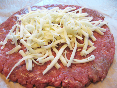 I start with 1/4 pound of ground beef. Place between 2 pieces of wax paper to form a thin patty.