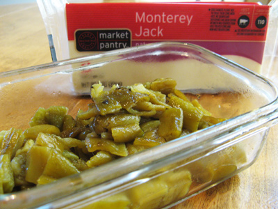 Next a layer of green chile, as much as you like.