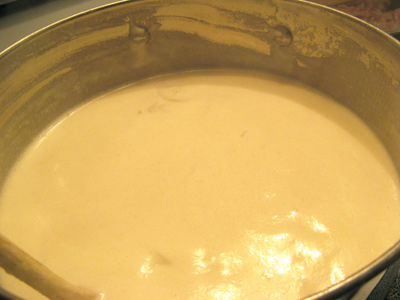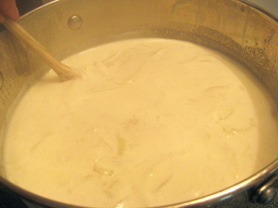 After about 15 minutes it starts to look creamier and the onions start to float. Check the potatoes to see if they are soft. If so the soup is almost ready. If not let the soup continue to simmer an additional 5 -10 minutes.