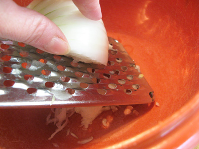 Grate 1 cup of onion, about 1/2 of a large onion.