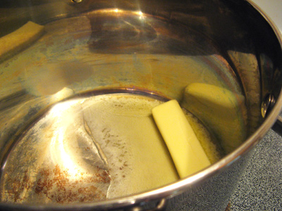 It’s time to get started. Place 1 whole stick of butter into a large stock pot over medium high heat.