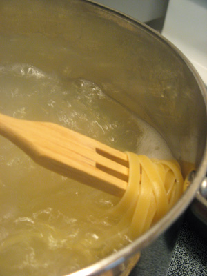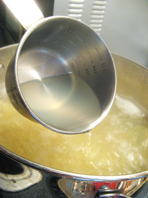 When the pasta is cooked, hold out a 1/2 cup or so of pasta water before draining.