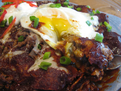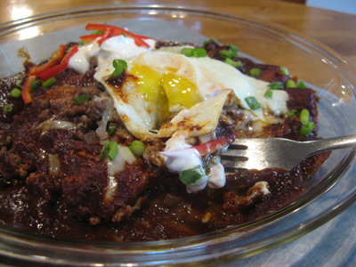 I added some additional sauce around the edges, because I’m a sauce hog, and a dollop of sour cream with some green onion and fresno red pepper to make it pretty.