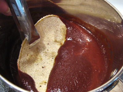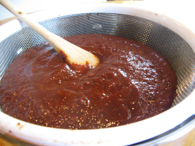 Strain the mixture. It may take some patience, the mixture is thick and it takes some time to run through the strainer.