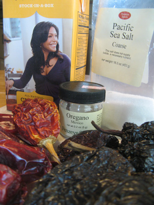 It starts with the sauce. You’ll need some chicken stock, oregano (preferably Mexican), salt and a combination of dried NM Red chile and Ancho chile.