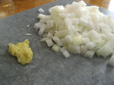 Also 2 cloves of garlic grated on a microplane grater and 1/2 large onion chopped.