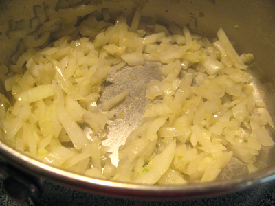 Using the same saucepan, drizzle some olive oil into the pan and saute the onions and garlic over medium high heat until the onions become translucent.