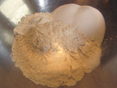 Combine your dry ingredients including flour, sugar, baking powder and salt.