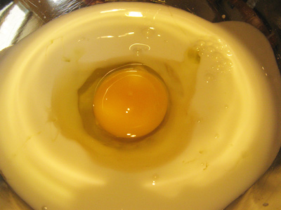 Pour the buttermilk and egg into the dry ingredients and stir until moistened.