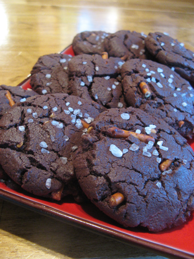 Dark Chocolate Pretzel Cookies with Sea Salt