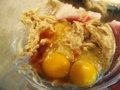 I started by creaming together the butter and sugars. I used 2 sticks of butter, 1 cup white sugar and 1 cup brown sugar.