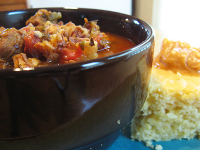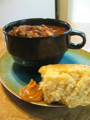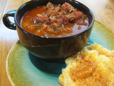 Ladle into bowls and serve with Sweet Cornbread and Ancho Honey Butter.
