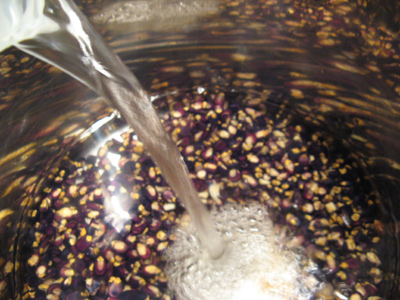 My sister Kat gave me some dried blue corn posole that I’ve been saving for a special occasion.  Canned hominy can be used in place of going through the process of cooking the posole.  If you choose the canned route, skip the next few steps.