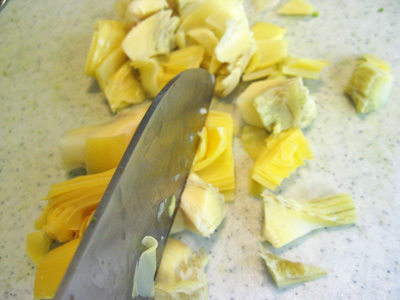 1 can quartered Artichoke Hearts, diced into bite size pieces