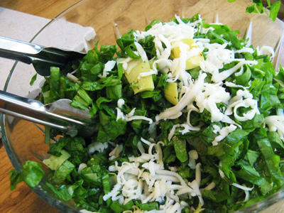 Time to add the grated cheese. Gently mix it in with tongs so that the cheese will not clump together.