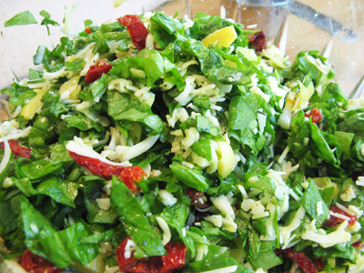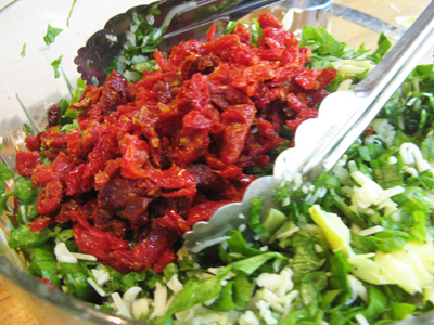 You want it to look like a tossed salad with all the ingredients evenly mixed.