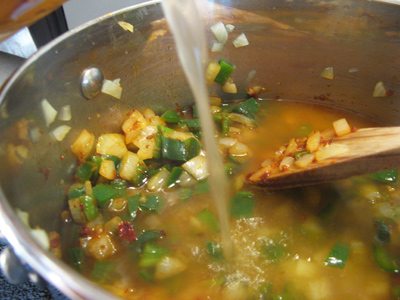 The aroma starts filling the kitchen when the soup starts to simmer.