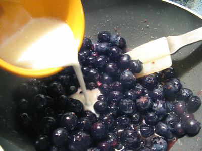 Add the fresh blueberries and lemon cornstarch mixture to the sauce pan. Stir until the sauce thickens and the blueberries are warm to almost bursting.