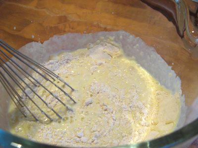Combine your dry ingredients and pour the buttermilk mixture over top. Whisk all ingredients just until smooth.