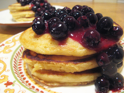 Breakfast again . . . actually it’s pancake night at the Cook house. It’s been a long week and I needed quick go to meal that was easy but filling. What’s not to like about a big stack of buttermilk pancakes with some warm blueberry sauce drizzled over the top. I have Kat to thank for the buttermilk pancake recipe, it’s the best! And the blueberry sauce is lightly sweetened with a hint of lemon in the background.