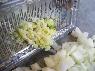 I chopped the onion and ran the garlic through a microplane hand grater.