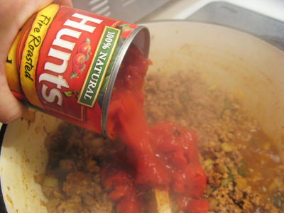 Stir it together and add your can of fire roasted tomatoes.