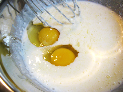 Add 2 large eggs and whisk together.
