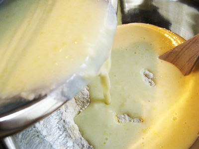 Pour the buttermilk mixture into the dry ingredients and stir until just blended.