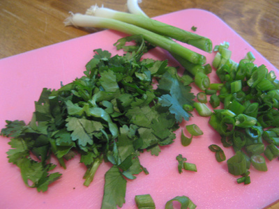 Roughly chop some cilantro and slice some green onions, about 2 tablespoons each.