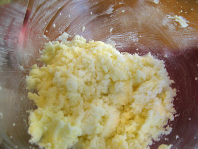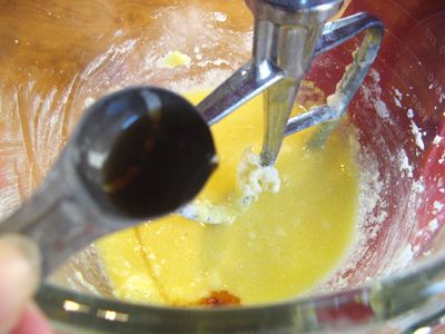 Beat softened butter and sugar together with a mixer until light and fluffy.