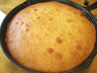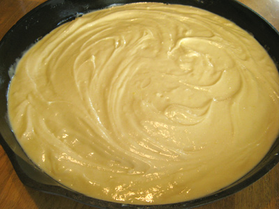 Cake should be browned on top. Insert a toothpick to test it. When done let cake rest for 5 minutes, then place a plate over the skillet and invert cake onto plate.