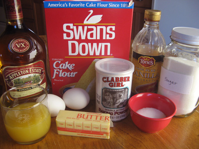 Sift together flour, baking powder and salt. Set aside. Beat softened butter and sugar with a mixer until light and fluffy. Add eggs, one at a time, beating after each egg. Add vanilla and rum to the mix. Add half of the flour mixture and beat on low just until blended, scraping the sides of the bowl. Add pineapple juice and blend, then add remaining flour mixture beating just until blended.