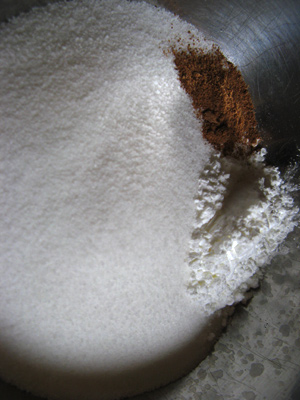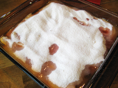 Now comes the fun part. Sprinkle the sugar, cornstarch and nutmeg over the batter.