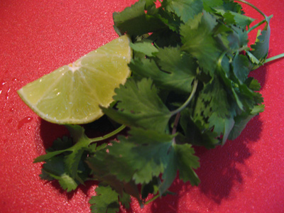 Cut a wedge of lime and some cilantro to add at the end.  Set this aside for now.