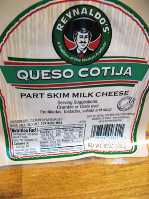 The Cotija cheese was easy to crumble with a fork.  It resembles Feta cheese but is milder in taste.