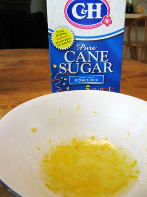 Sift powdered sugar into a medium size bowl. Whisk in lemon juice and zest until glaze forms.