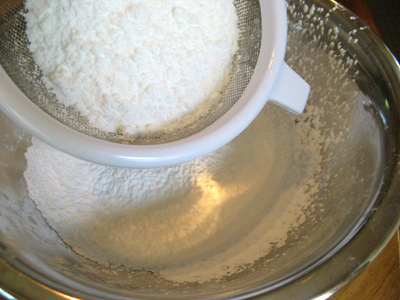 Sift 1 cup of powdered sugar into a medium size bowl.