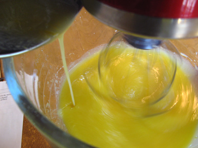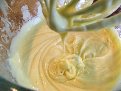 You’ll need 2 sticks butter, cake flour, sugar, 4 eggs, baking powder, lemon juice and zest plus a little sour cream.