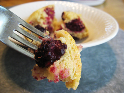 Combine flour, baking powder, baking soda and salt. Alternate dry ingredients and buttermilk beating until mixture becomes a smooth batter. Fold in lemon zest and blackberries.